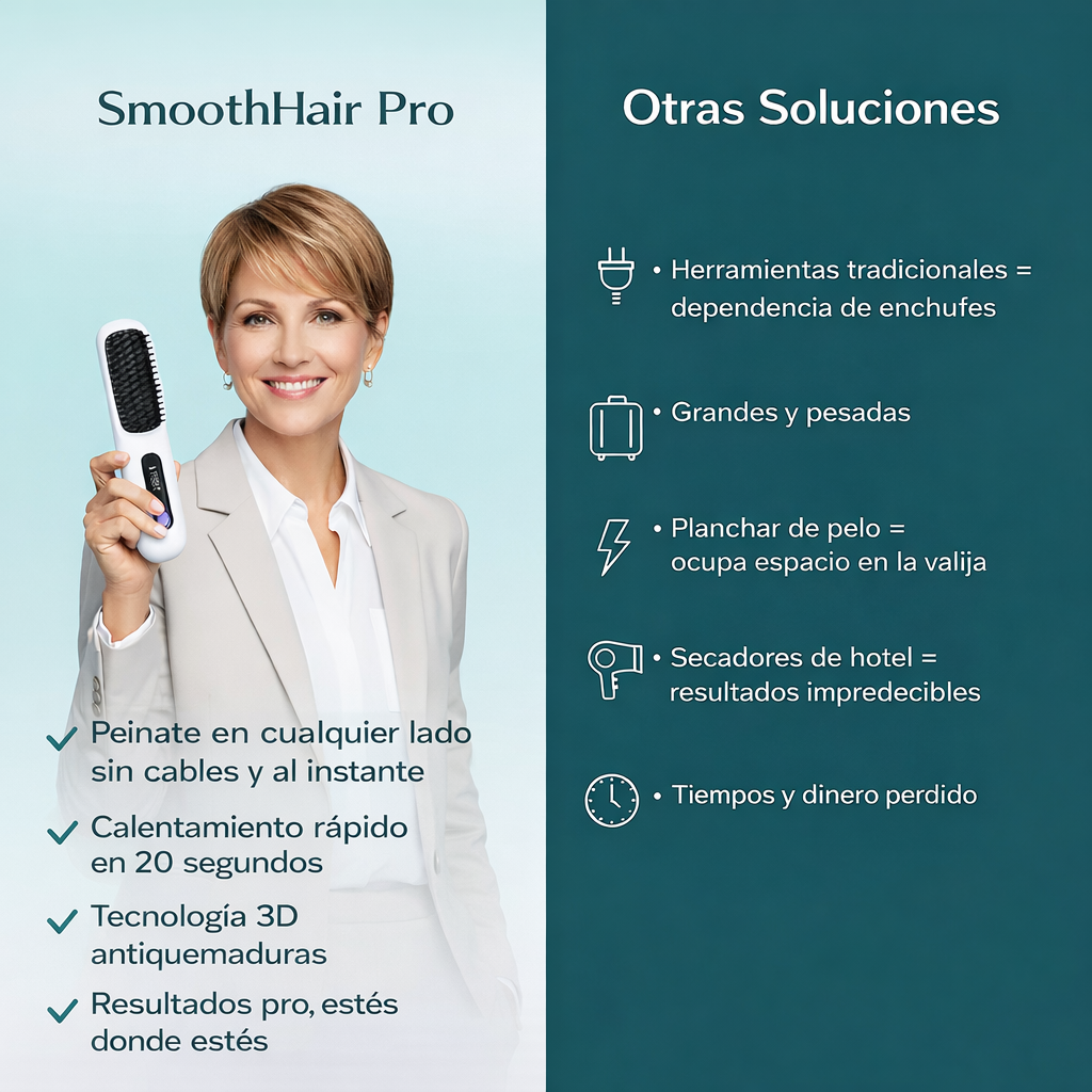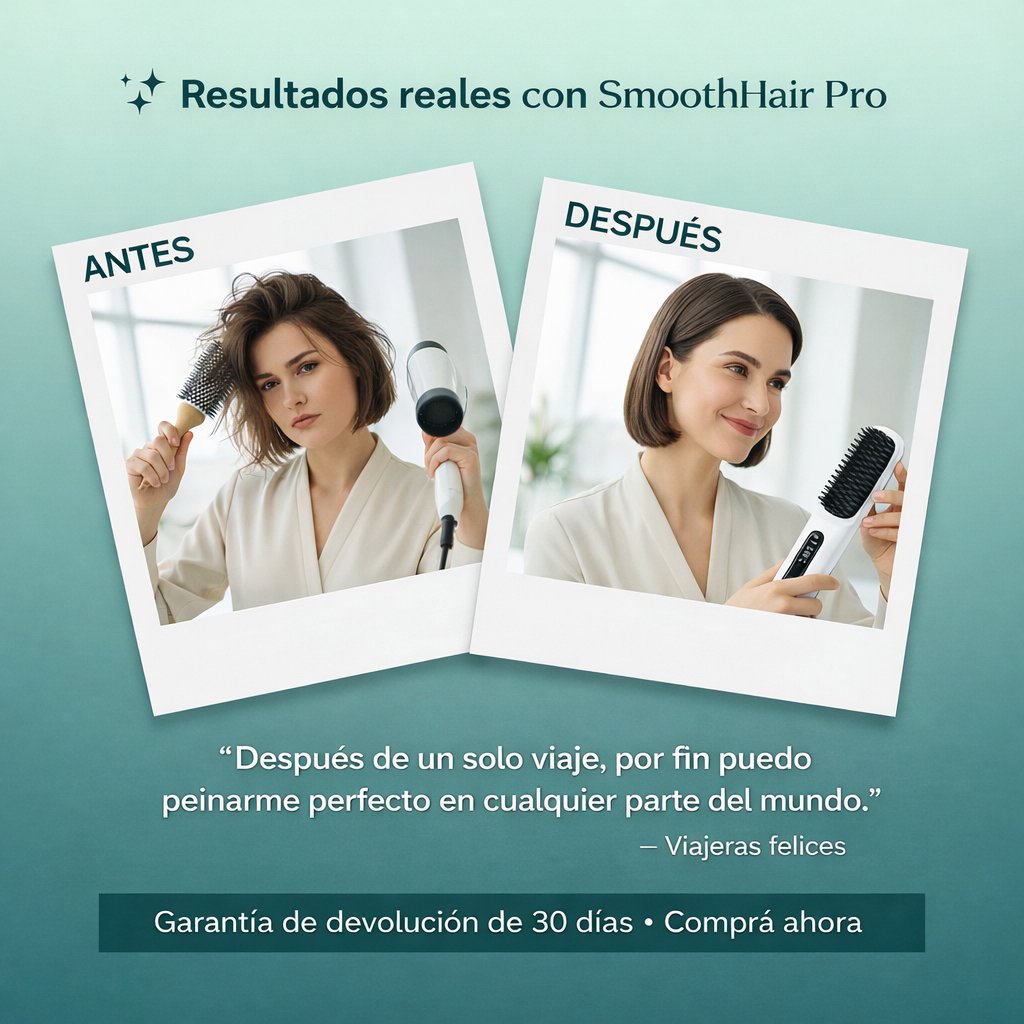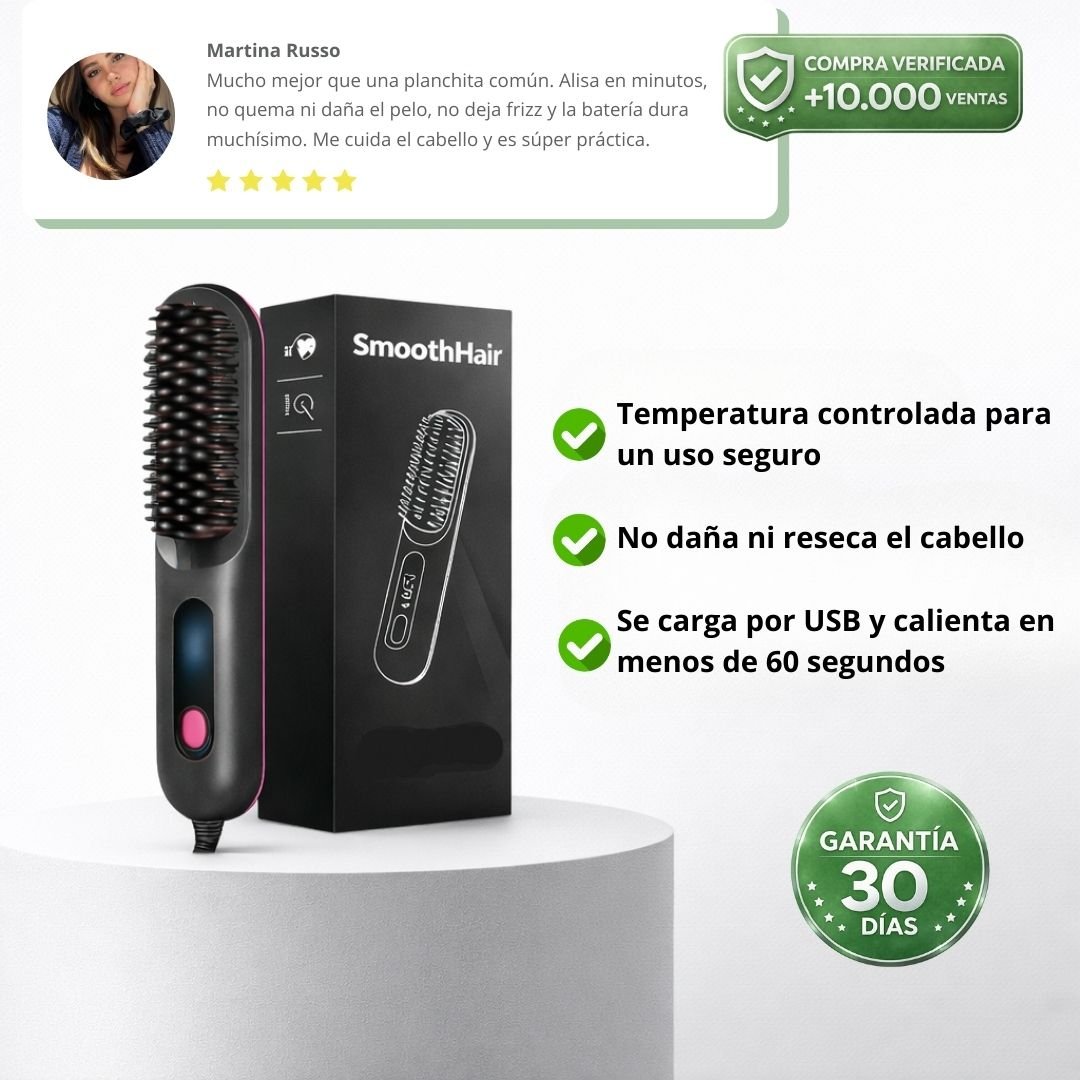 Su tecnología iónica reduce el frizz y la estática, dejando el cabello más suave, con brillo natural y un acabado prolijo. SmoothHair es fácil y seguro de usar, te permite peinarte en pocos minutos sin técnicas complicadas y con el mejor resultado.